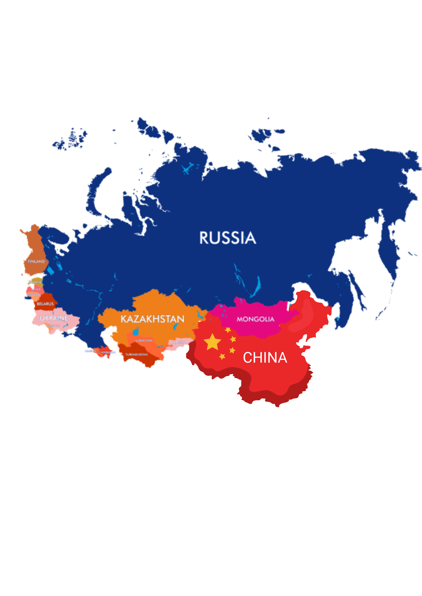 Қазақстан, Ресейдің басым бөлігі, Өзбекстан, Әзірбайжан, Грузия, Түркия және қытай.
